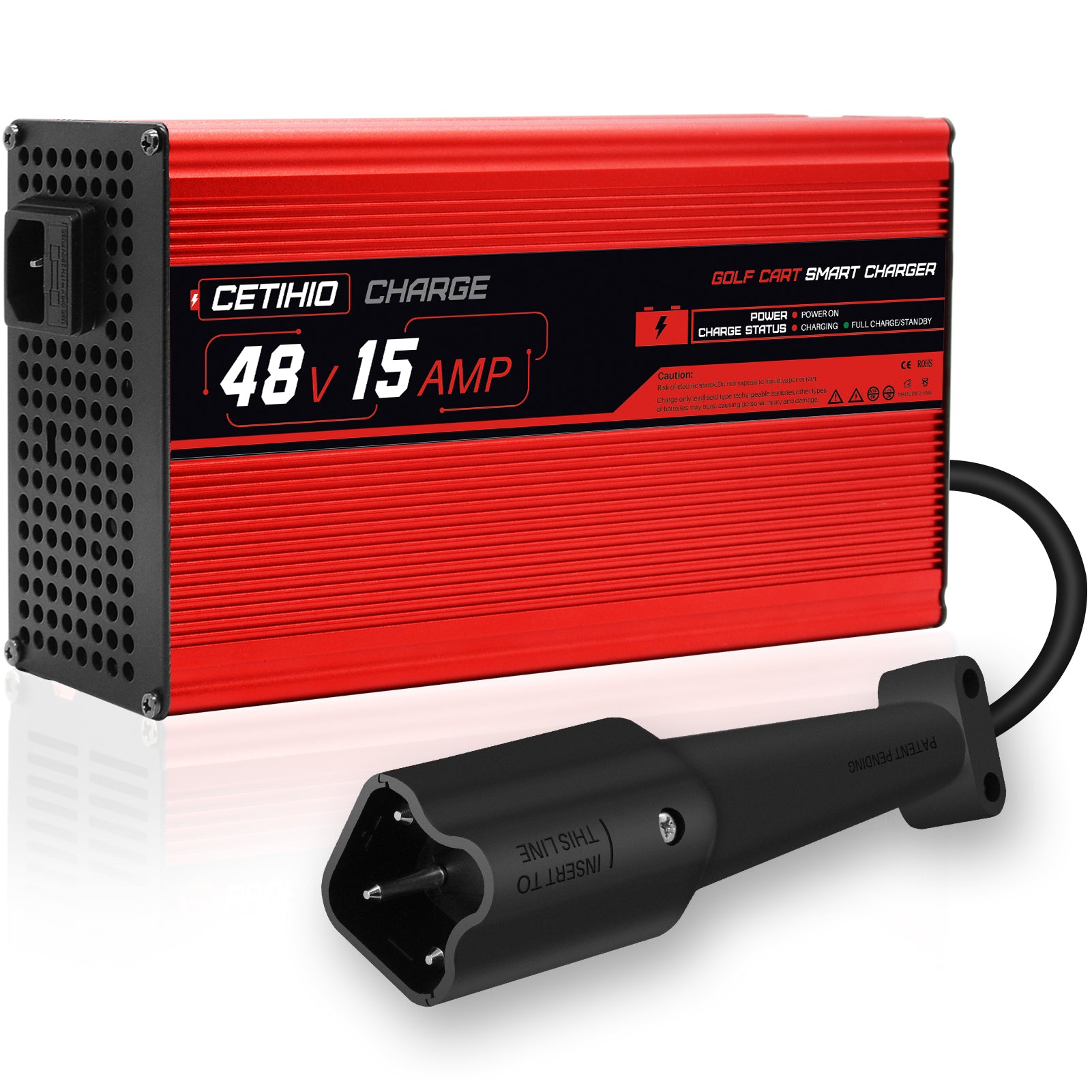 - ⚡【Perfect Replacement】48V15A golf cart charger weighing less than 6 lbs with 3 pin leaf plug to charge Yamaha G29/Drive golf carts from model year 2007 to present.